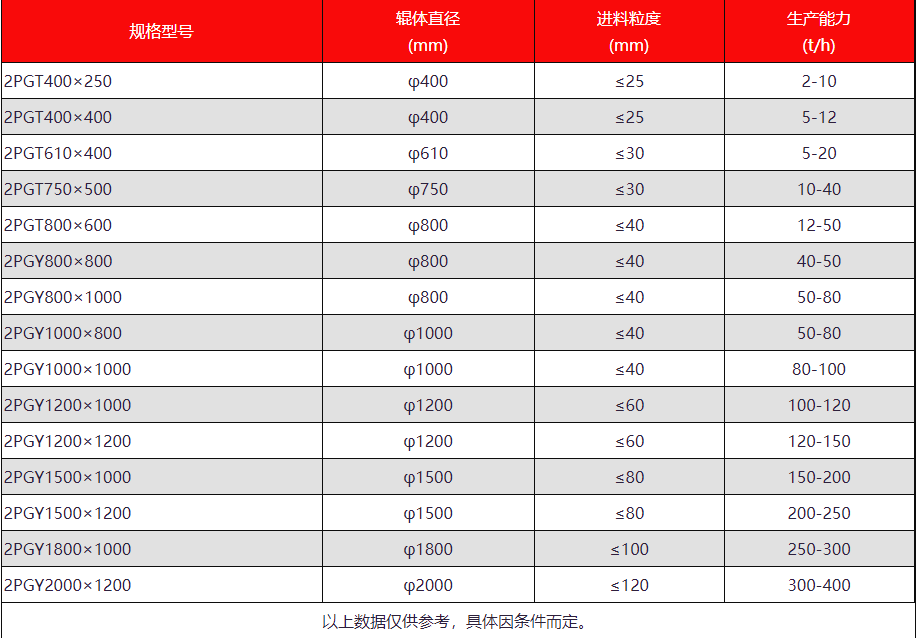 大型對輥式破碎機(jī)規(guī)格型號: